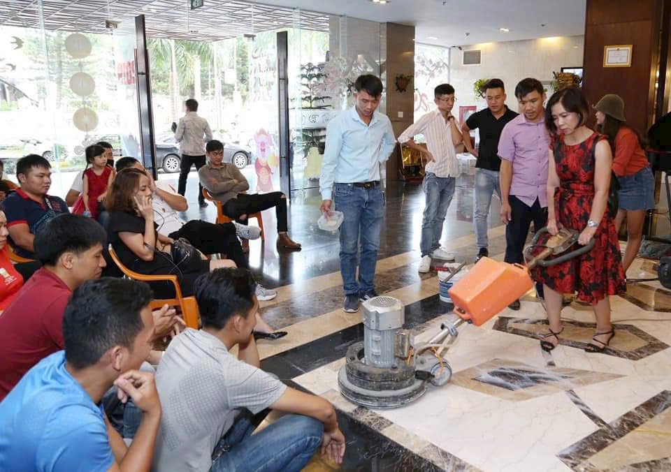 - Đội ngũ nhân viên giàu kinh nghiệm: Đội ngũ nhân viên của chúng tôi được đào tạo bài bản, có nhiều năm kinh nghiệm trong lĩnh vực thi công phục hồi sàn đá.