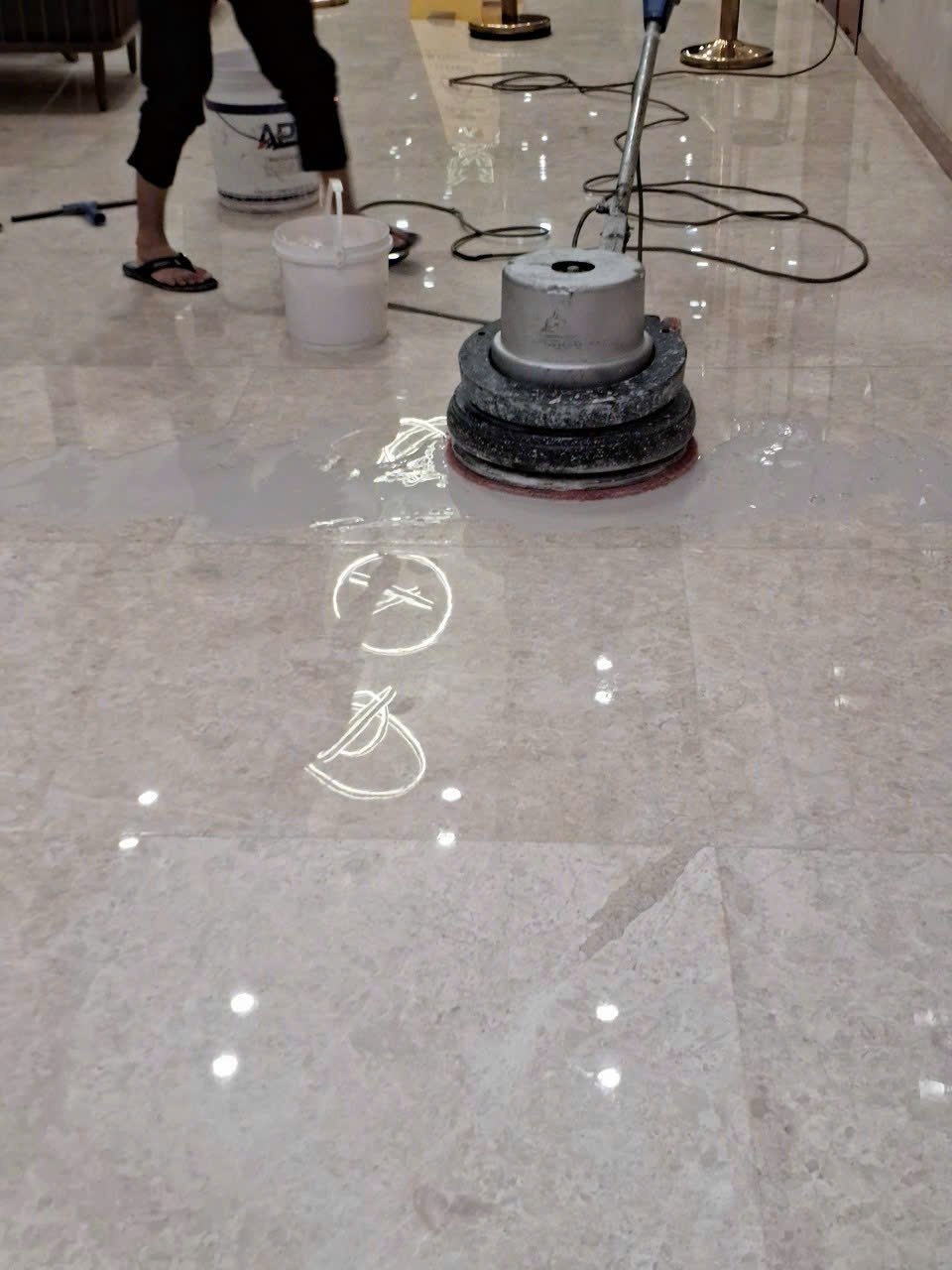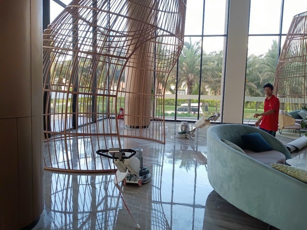 - Đánh bóng sàn đá Marble: Đánh bóng bề mặt sàn đá Marble, loại bỏ các vết bẩn, ố vàng, bảo vệ sàn khỏi trầy xước và hư hại.